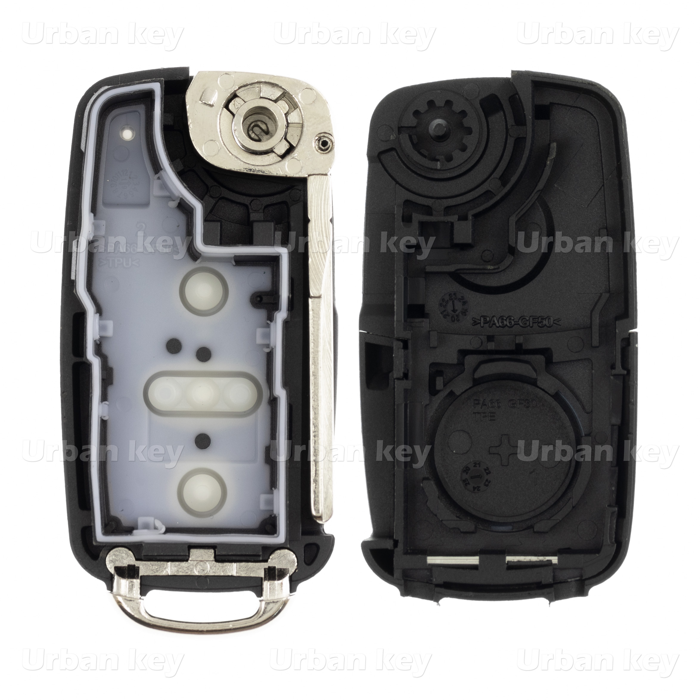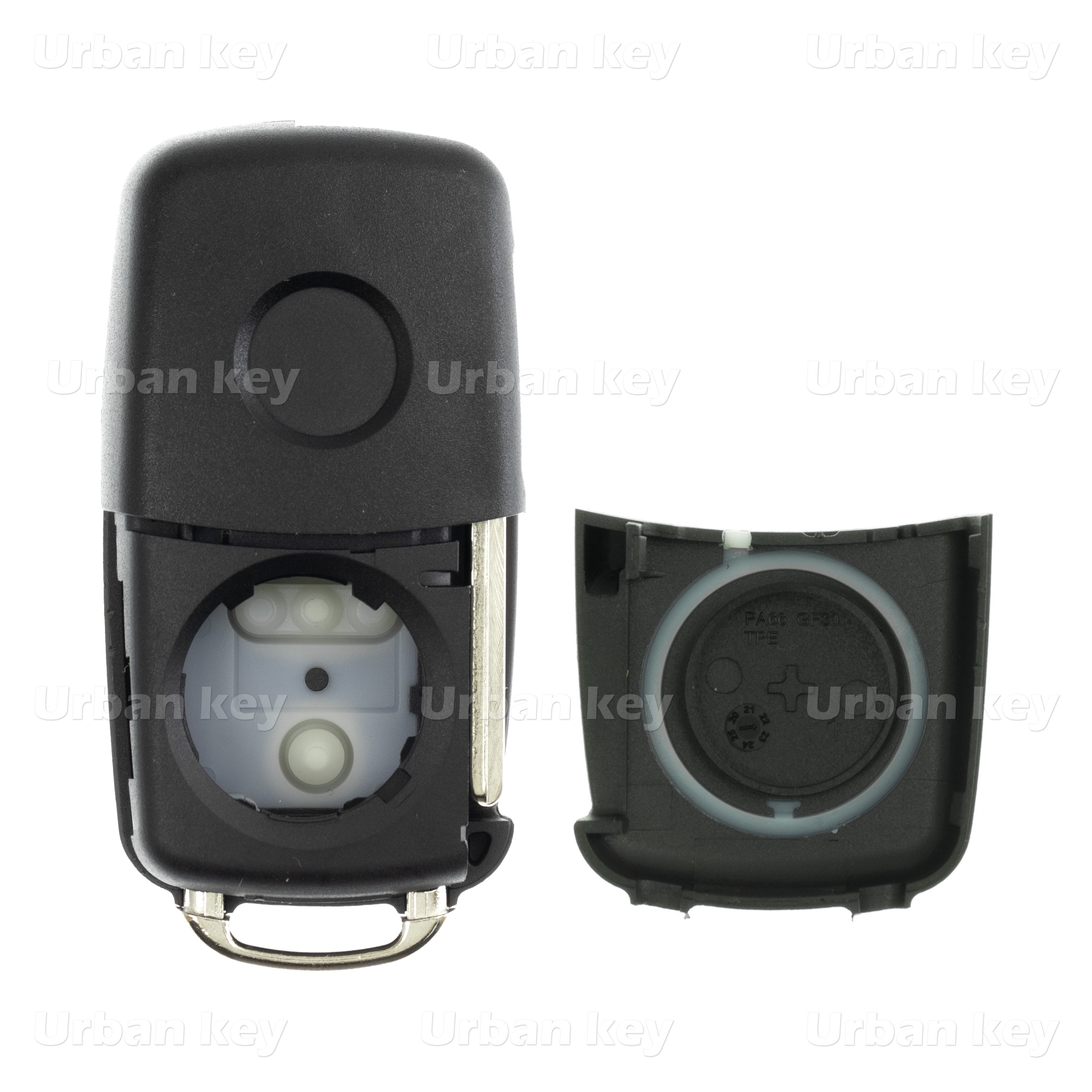 CAIXA SUBSTITUIÇAO AUTO 2 BOTOES AUDI, SEAT, SKODA, VOLKSWAGEN, BENTLEY, LAMBORGHINI SILCA: HU66 JMA: HU-HAA KEYLINE: V66 / AD66 CAIXA NOVO MODELO SEM TRANSPONDER COM SUPORTE E CONTACTO DE PILHA CR2032 SEM SIMBOLO POR FAVOR SELECCIONE E COMPLETE A CAIXA NOS PRODUTOS ALTERNATIVOS EM BAIXO