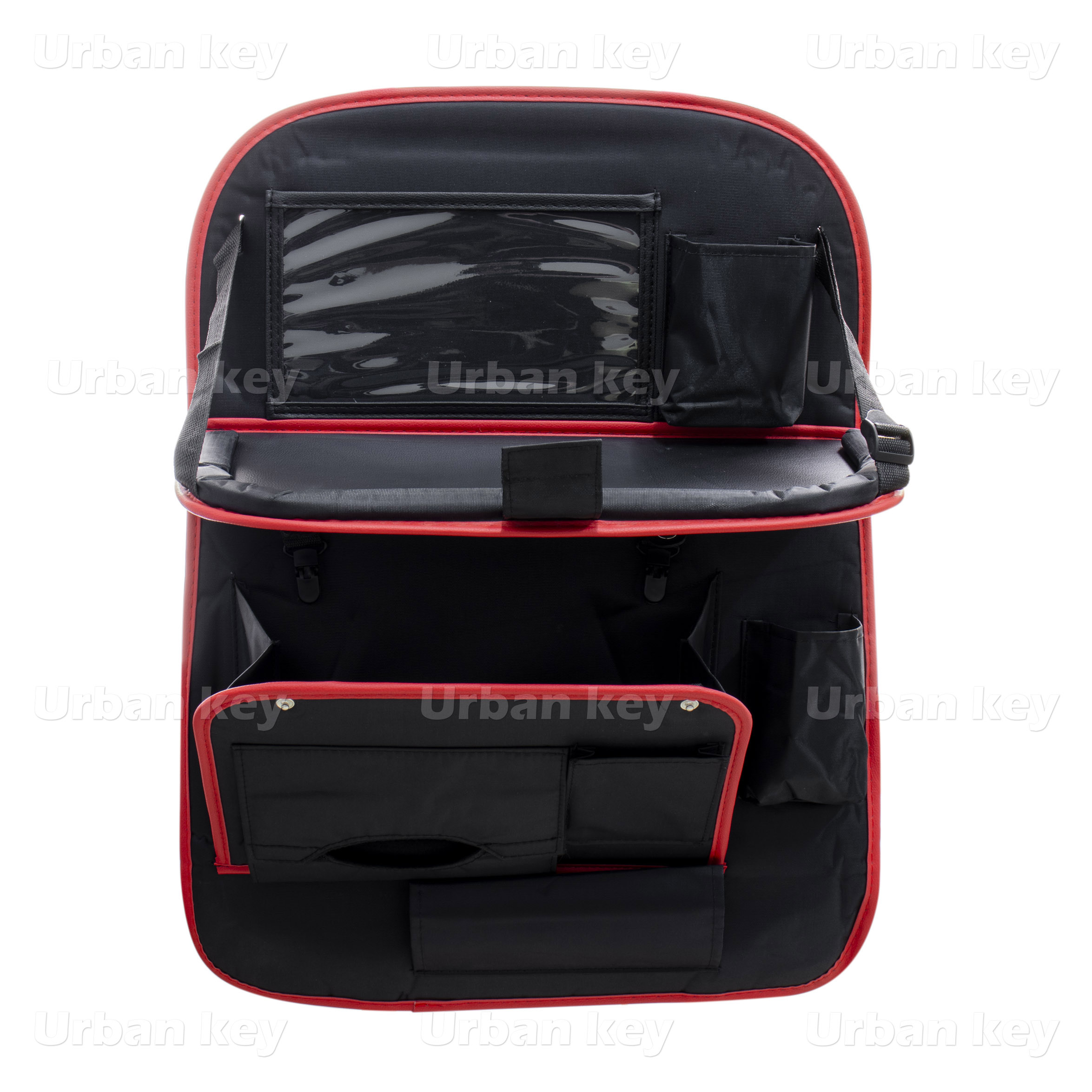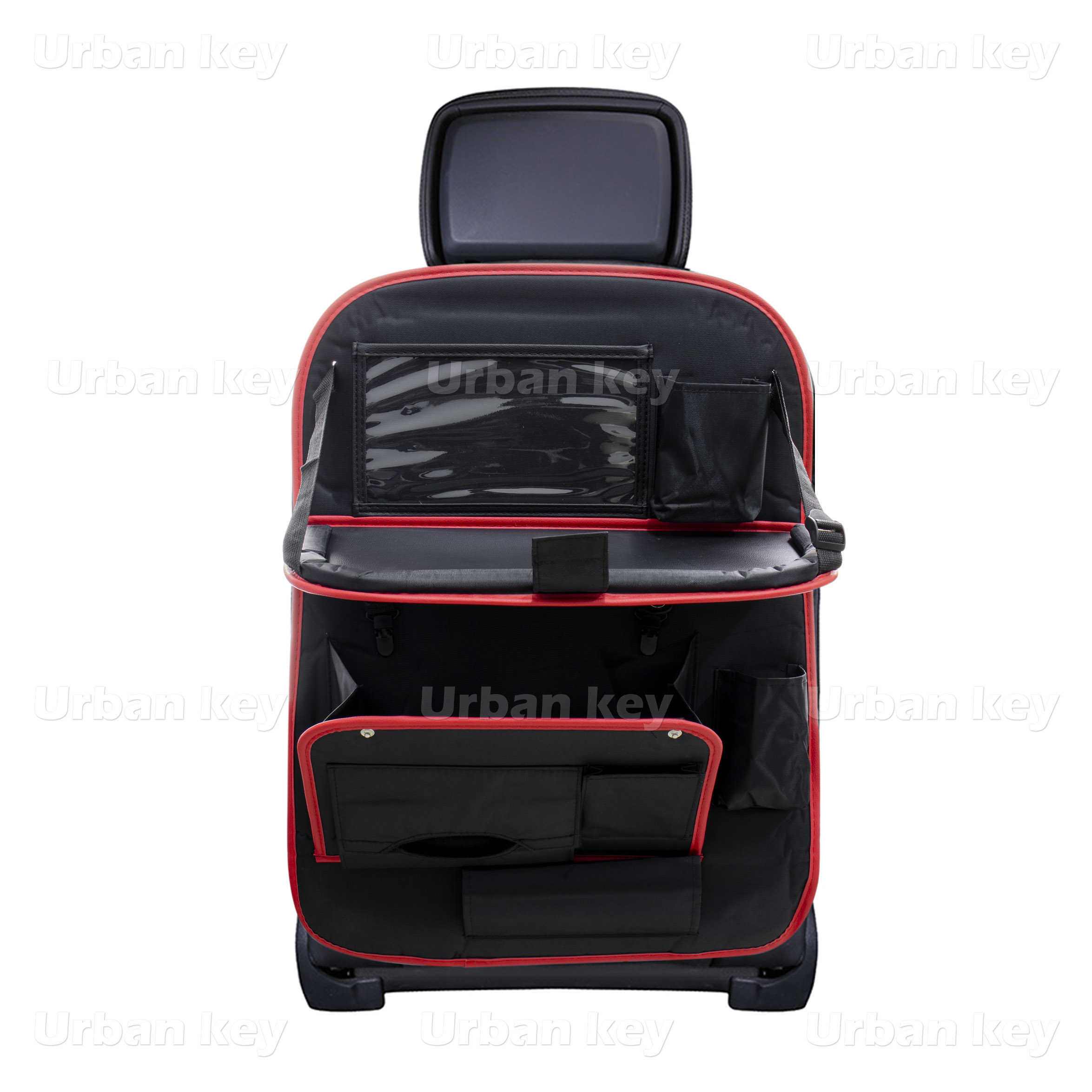 Organizador de assento traseiro preto com rebordo vermelho