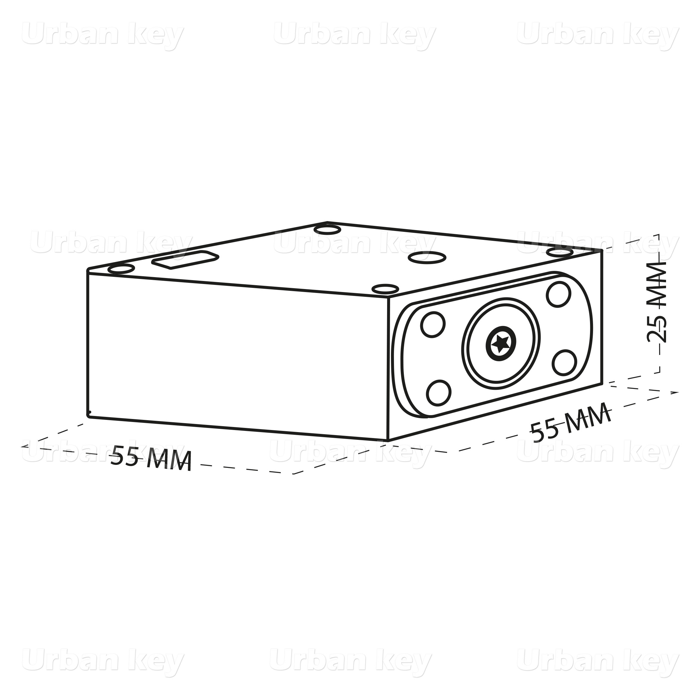 DIMENSOES FECHADURA: 55mm / LAR. 55mm / ALT.25mm