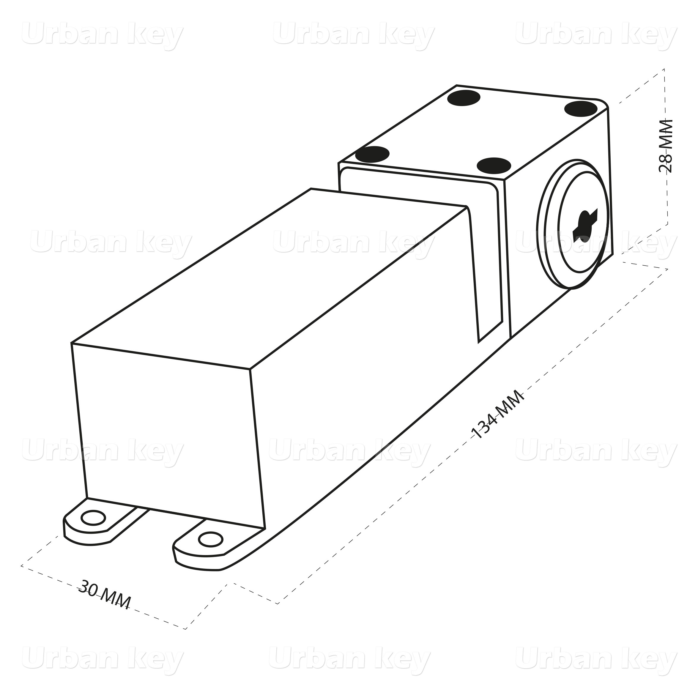 DIMENSOES FECHADURA: . 134mm / LAR. 30mm / ALT.28mm